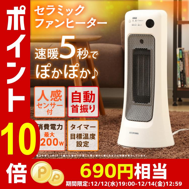 価格: 6,980円 レビュー評価:4.33 レビュー数:98 ※商品紹介ページの網目のお色が「グレー」となっておりますがグレーが完売となり、網目のお色が「ブラック」となります。あらかじめご了承いただけますようお願い申し上げます。 ファンヒーター 暖房 セラミックファンヒーター 人感センサー ファンヒーター ファンヒーターセラミックファンヒーター セラミックファンヒーターファンヒーターアイリスオーヤマヒーター2段階調整可能な人感センサー付セラミックファンヒーターです♪ハイパワー1200W!●商品サイズ幅208×奥行211×高さ510(mm)●消費電力1200W●質量約2.2kg●電源コード長約1.8m●電源AC100V、50/60Hz●ヒーター切替強(1200W)、弱(800W)、送風●タイマー1?4時間●温度設定表示約15?35度●首振り左右40度●安全機能転倒時自動電源OFF、チャイルドロック(首振りボタン長押し3秒)●暖房の適用床面積(目安)【断 (更新日時:2018/12/12 16:56) Supported by 楽天ウェブサービス |